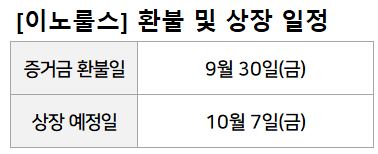 이노룰스 : 증거금 환불 및 상장일, 따상 정보