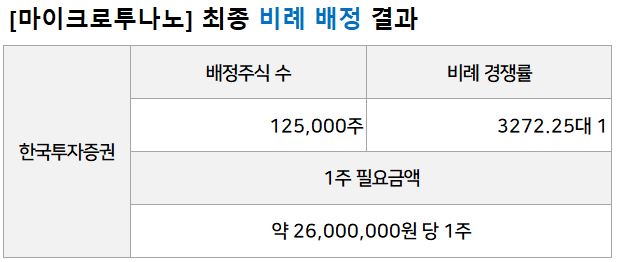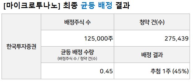 마이크로투나노 공모주 청약 : 비례배정 결과