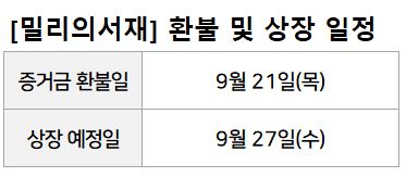 밀리의 서재 증거금 환불일은 9월 21일(목), 상자아은 9월 27일(수) 예정입니다.