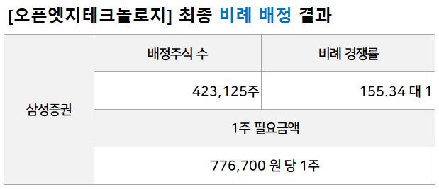 오픈엣지테크놀로지 공모주 청약 : 비례배정 결과