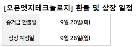 오픈엣지테크놀로지 증거금 환불일은 9월 20일(화), 상장은 9월 26일(월)입니다.