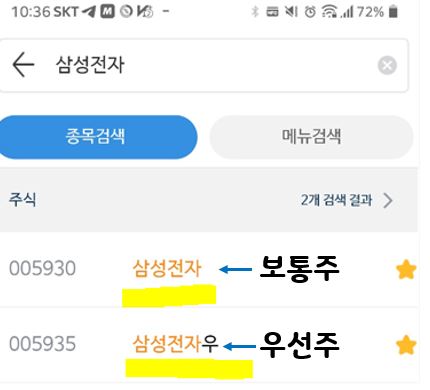증권사 앱에서 삼성전자 주식을 검색하면 <삼성전자>와 <삼성전자 우> 두 가지 종목을 확인할 수 있습니다. 종목명 뒤에 낱말 <우>가 있으면 우선주, <우>가 없으면 보통주라고 합니다. 삼성전자 우, 아모레퍼시픽 우, 현대차 우 등 '우'가 붙은 우선주와 기업명만 적혀있는 보통주는 어떤 차이가 있을까요? 보통주와 우선주의 뜻, 그리고 장점과 단점을 이해하기 쉽게 알아보겠습니다.