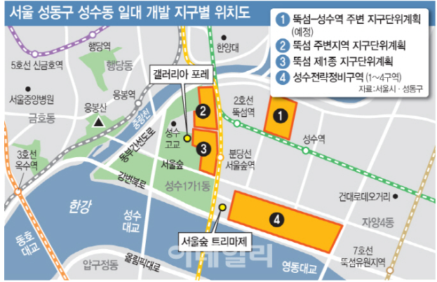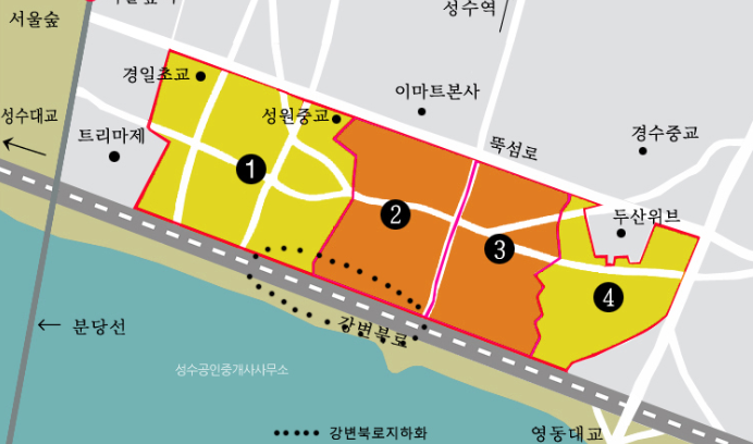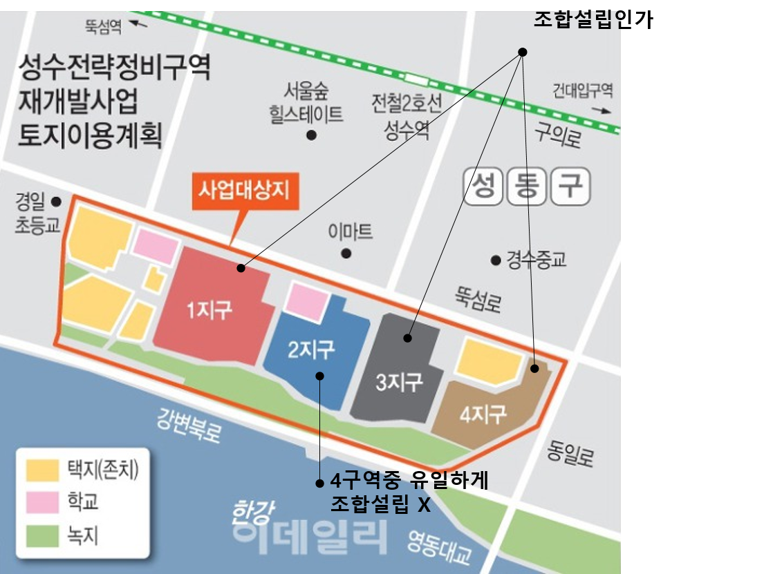 성수전략정비구역 4개 지구는 통합 개발되므로 사업 속도가 유사해야 함!