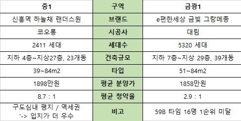 <중1> 신흥역 하늘채랜더스원 vs <금광1> e편한세상 금빛그랑메종