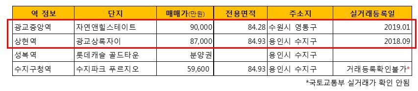 3-2. [시세비교] 신분당선 대장 아파트 단지 유사 면적