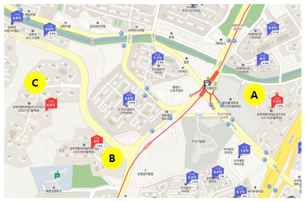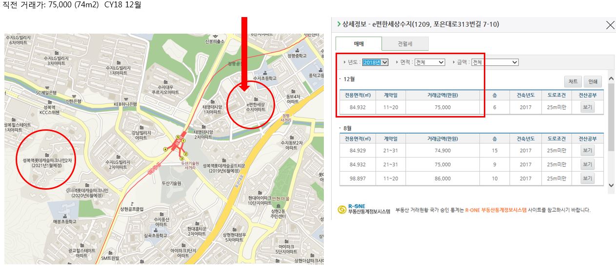 - 수지구 성복동은.... 평당 단가가 수원시 영통구 평균보다 살짝 높기만 할 뿐