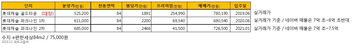 3-3. [시세비교] 성복역 롯데 3총사 분양권 / 프리미엄 비교