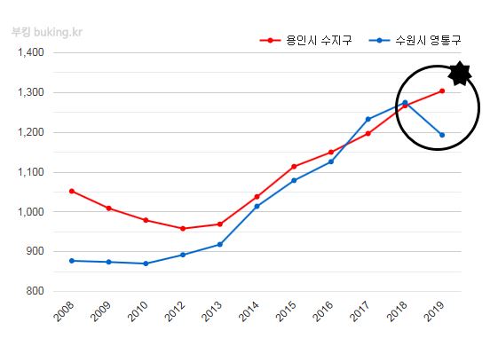- 2011년 신분당선 개통했으나 영통구 평당 단가 큰 변화 없음