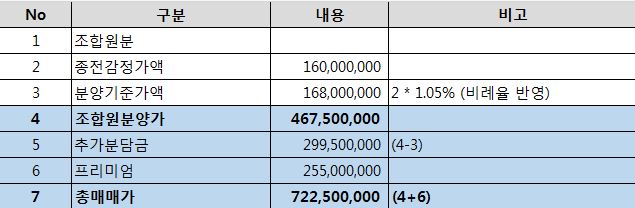 대지지분 10평대 매수하여 25평형 조합원 분양을 7.2억에 하는 거네요