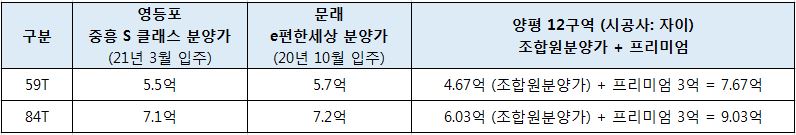 ★ 양평 12구역 조합원 분양가 vs 중흥 S클래서 vs 문래 e 편한세상