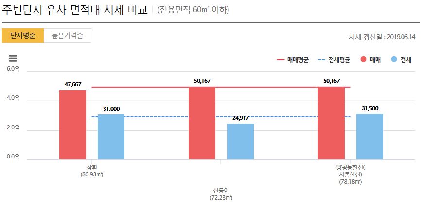 매매가 시세변동과 유사 면적대와의 비교를 보면 (특히 양평 한신)