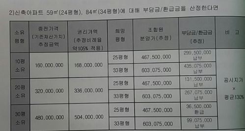 - 재건축시 분담금 추정치 : 21평 9000만원 / 26평 기준 1.6억