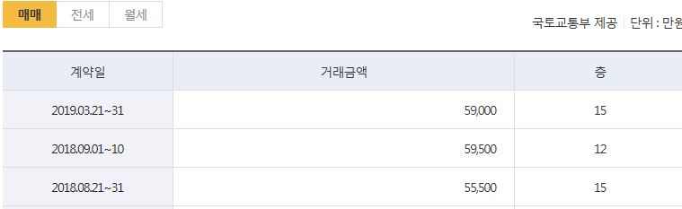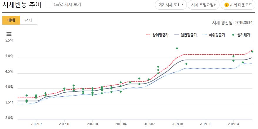 현재 네이버 부동산의 매물정보는 매매가 5.5억 이며 작년 18년 6월 대비 약 1억 올랐네요.