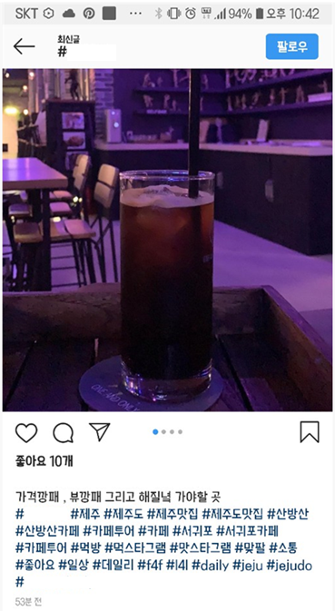 이 피드를 올린 목적을 생각했을 때 과연 적절한 해시태그를 사용했느냐의 관점에서 바라보시면, 어떠신가요? 내 게시물을 보고 내 가게에 찾아오길 바라는 고객은 제주 현지민이나 제주 여행객일거에요.