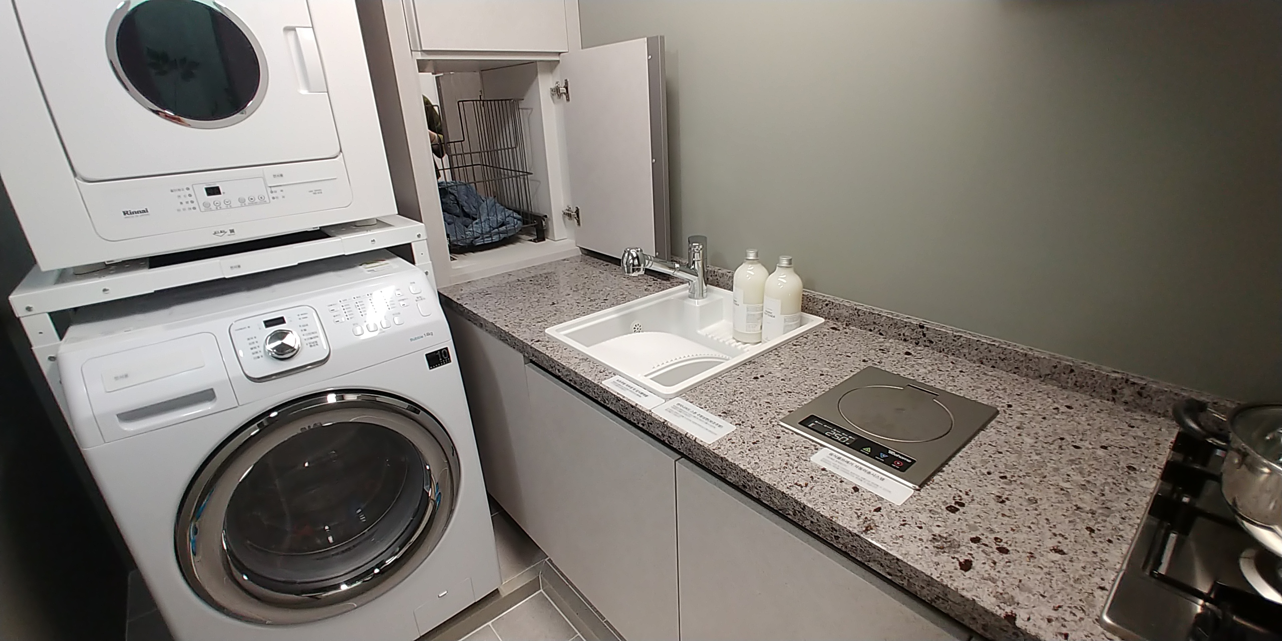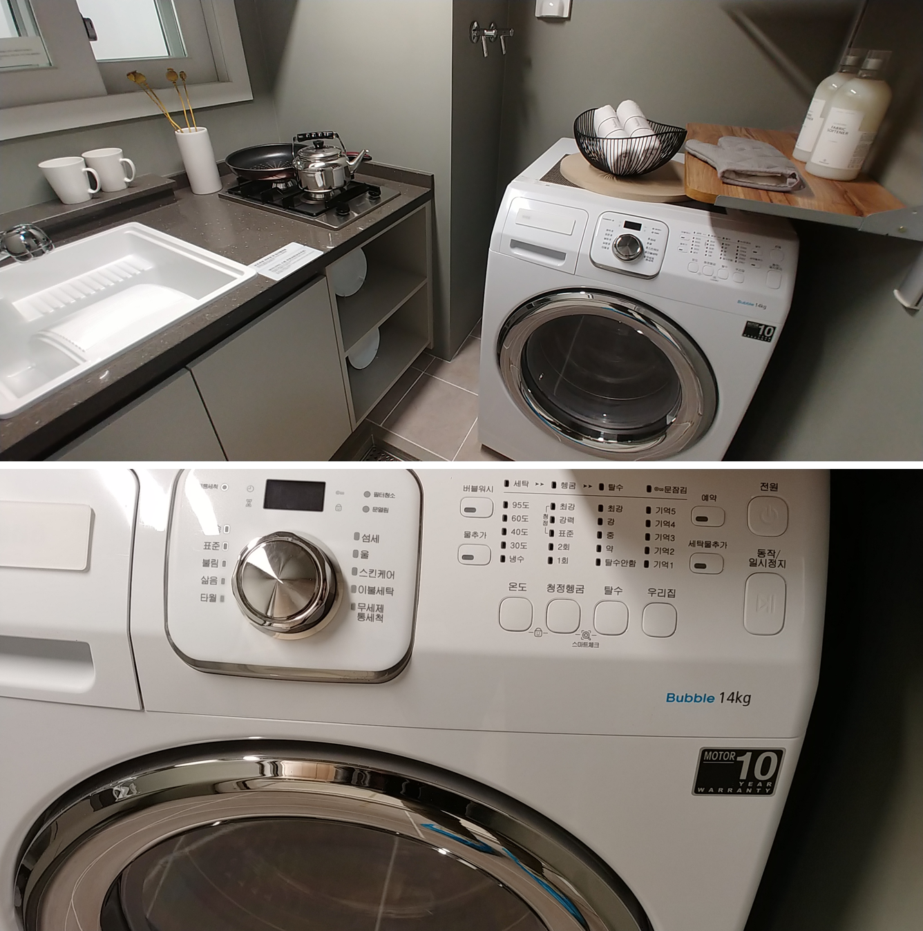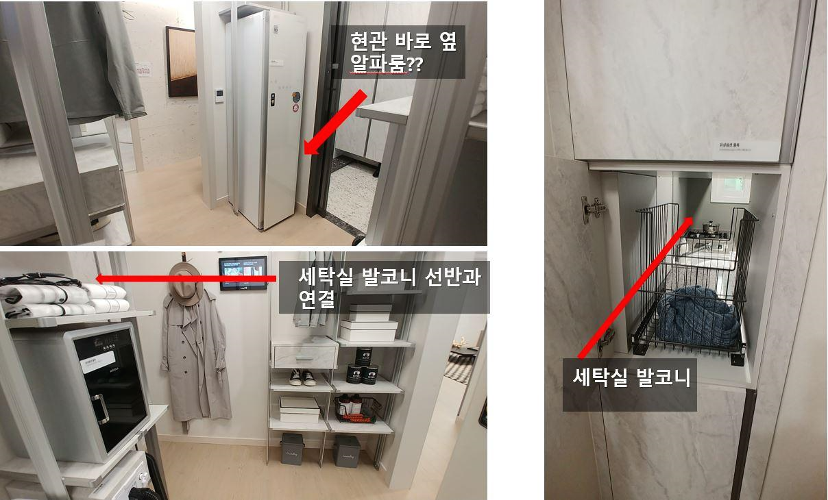 다른 모델하우수는 세탁기 위에 건조기까지 얹혀있던데 디에이치 포레센트에는 14kg 세탁기 하나만 배치