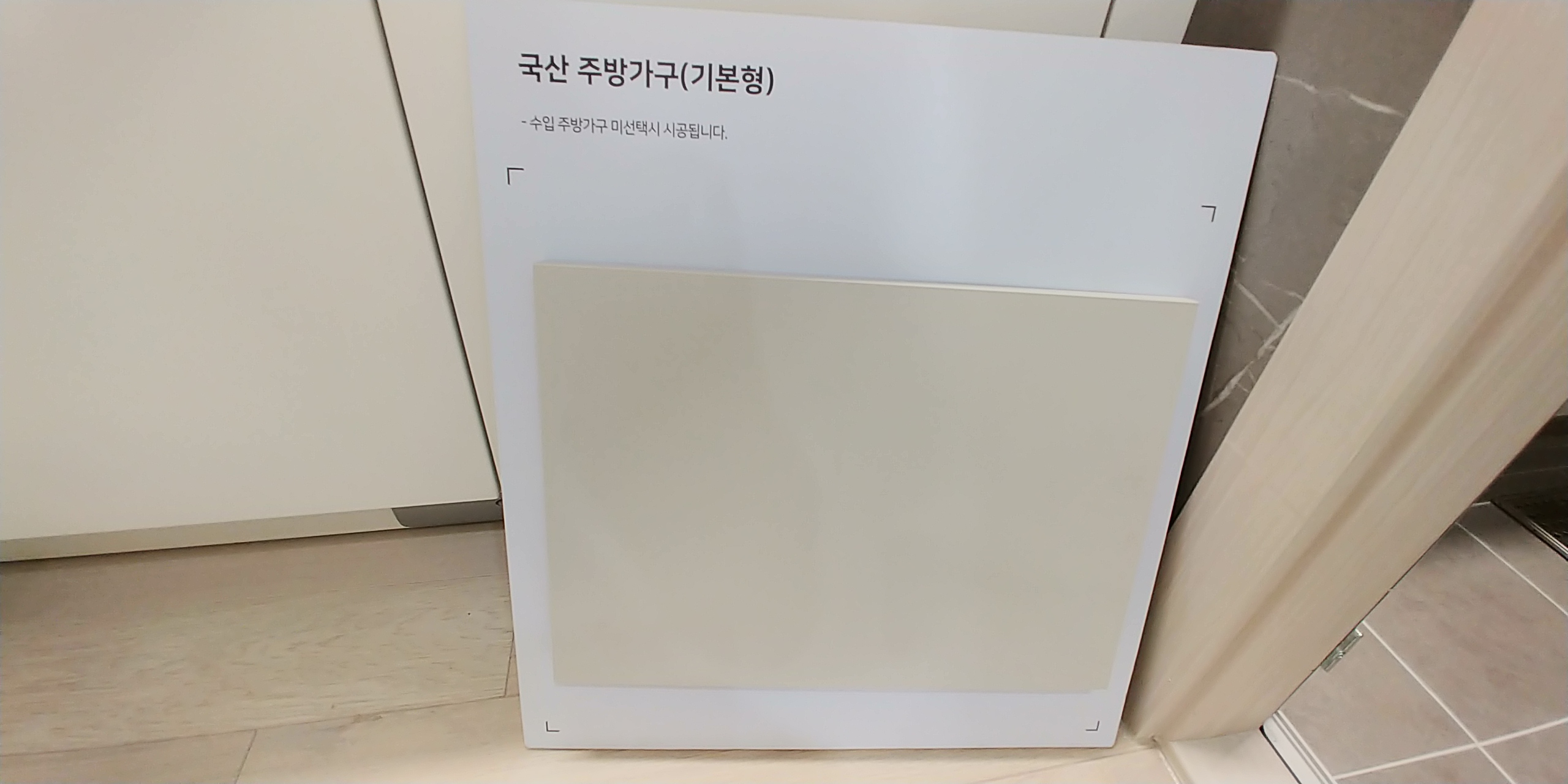 수입산 주방가구(유상옵션) 미선택시 국산 주방가구 기본형이라는데, 타일만 보아서는 잘 모르겠지만 더더욱 고급진 맛은 없음