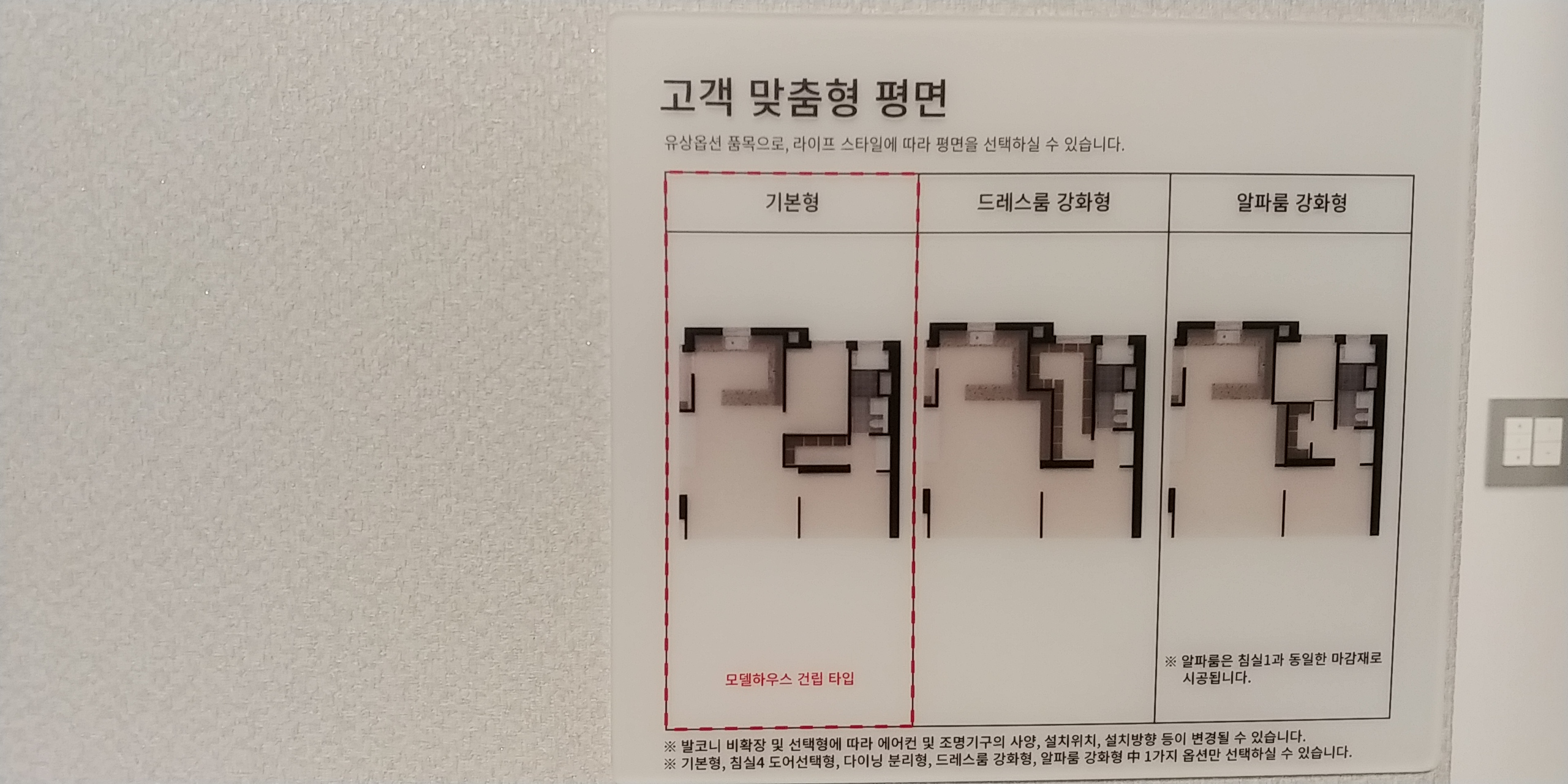 드레스룸을 가벽을 제거해 드레스룸 공간을 더 확보하거나, 알파룸을 강화하는 구조로 유상옵션 선택 가능하다는데 처음부터 구조를 잘 뺐더라면? 분양가도 높으면서 공간 변형을 왜 고객의 유상 선택으로 돌렸을까?