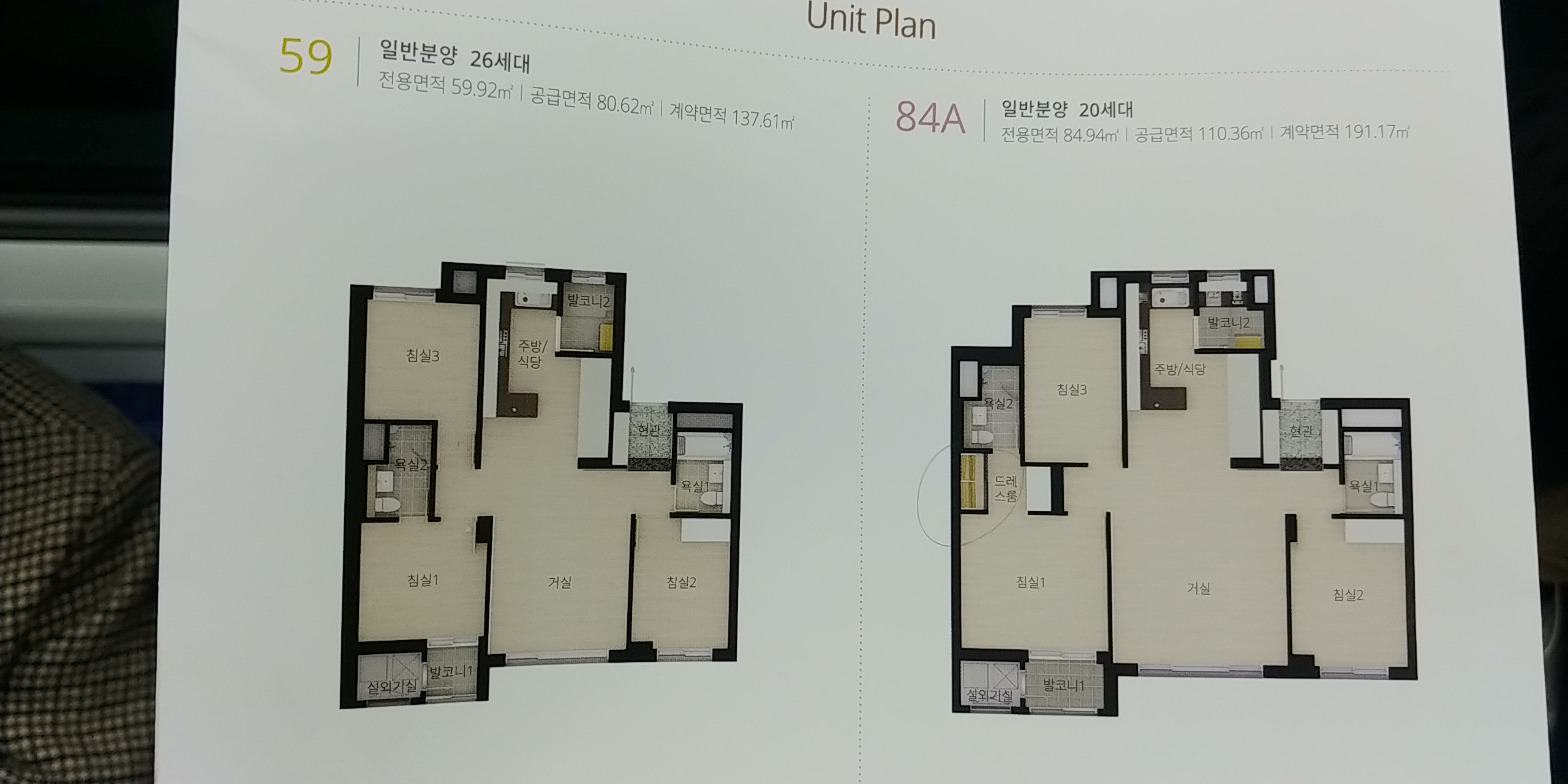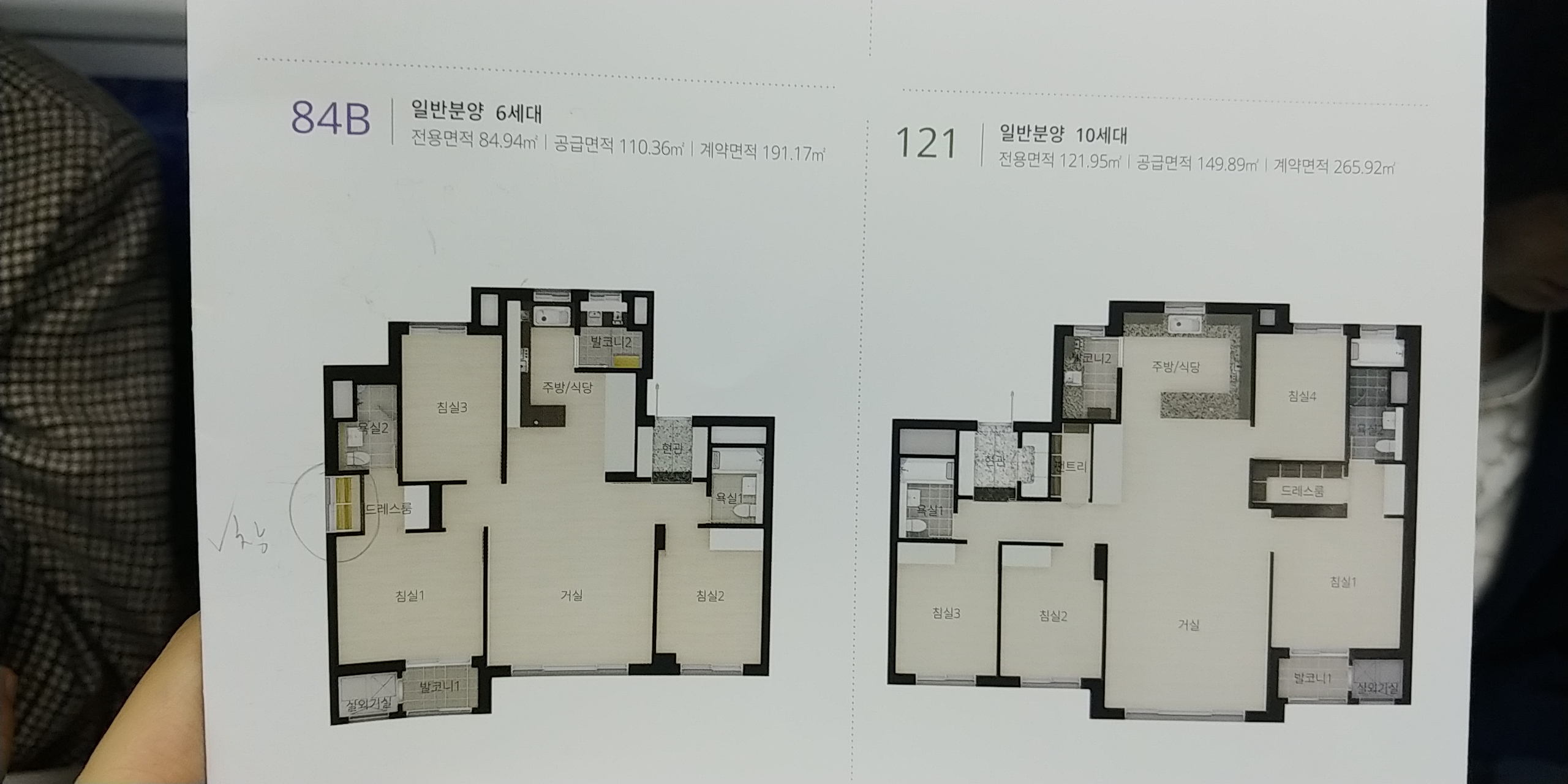 일반 분양하는 3개 타입 중 84와 121m2 만 유닛을 볼 수 있어요