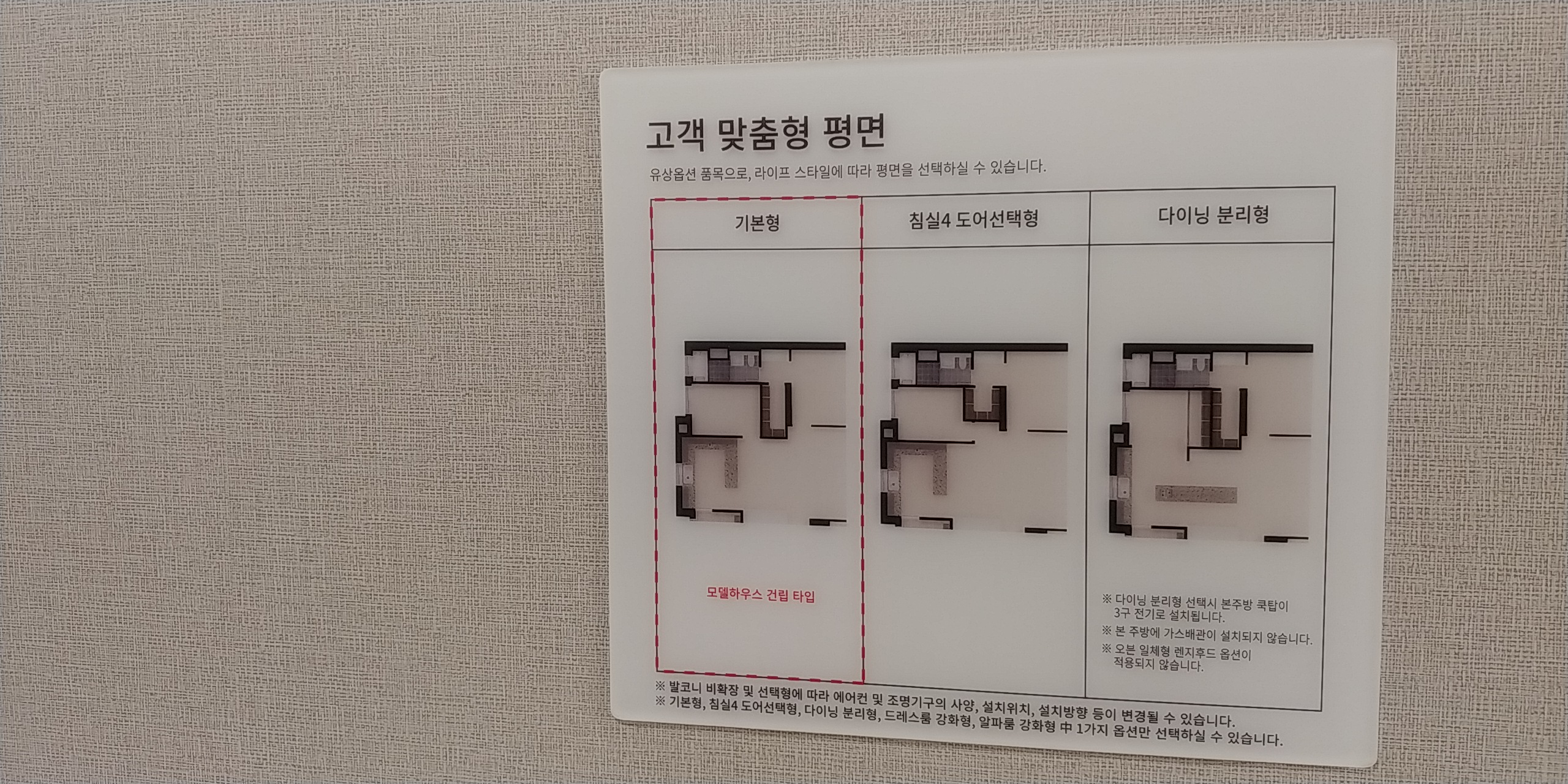 가벽 제거한 고객 맞춤형 평면은 주방쪽 가벽에도 해당되어, 주방 가벽 제거해 방을 넓히거나 주방을 독립적으로 분리하든가. 단, 다이닝 분리형 선택시 오픈 일체형 렌지후드 옵션 적용되지 않음