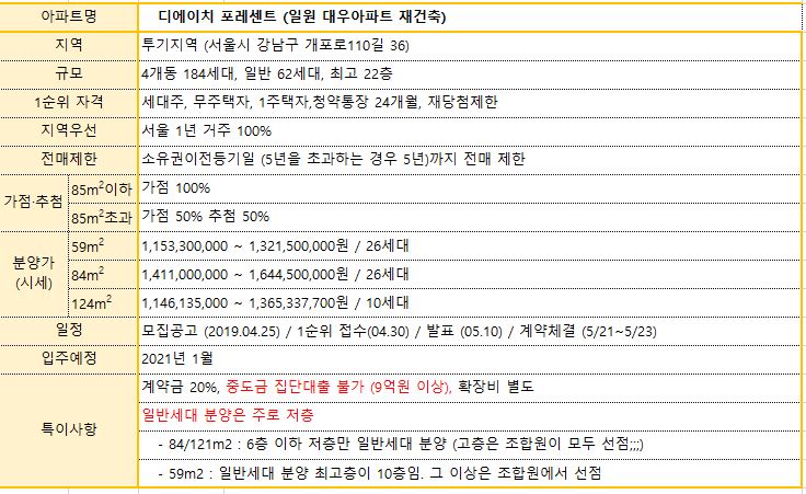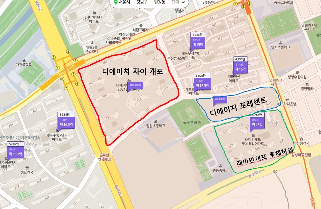 디에이치 자이 개포 vs 래미안개포 루체하임 vs 디에이치 포레센트