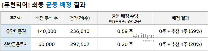 1. 퓨런티어 청약 경쟁률 및 배정 수량
