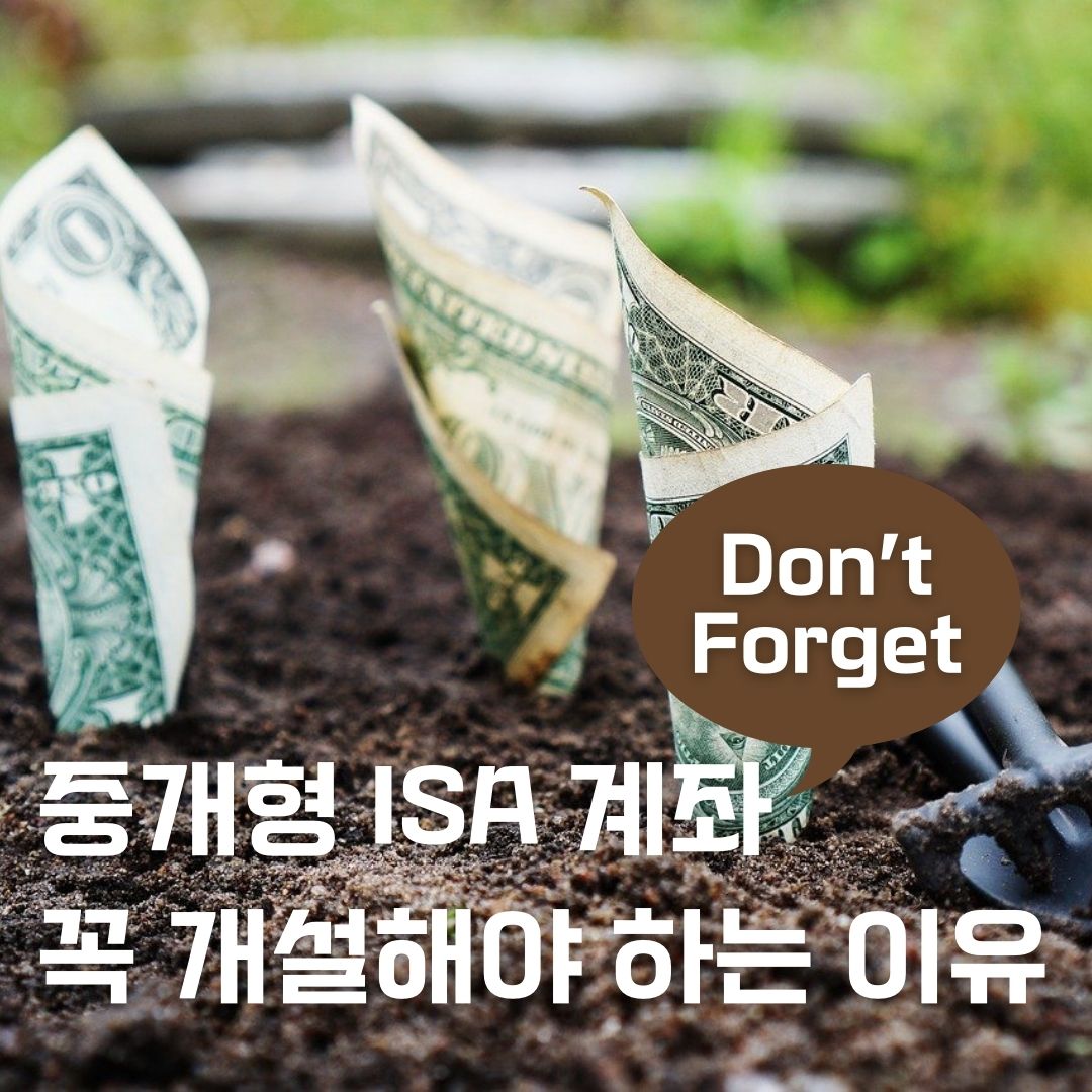 하루라도 이르게 개설할 수록 투자 원금에 대한 절세 혜택을 누릴 수 있는 중개형 ISA 계좌로 세테크 노려보셔도 좋겠습니다.
