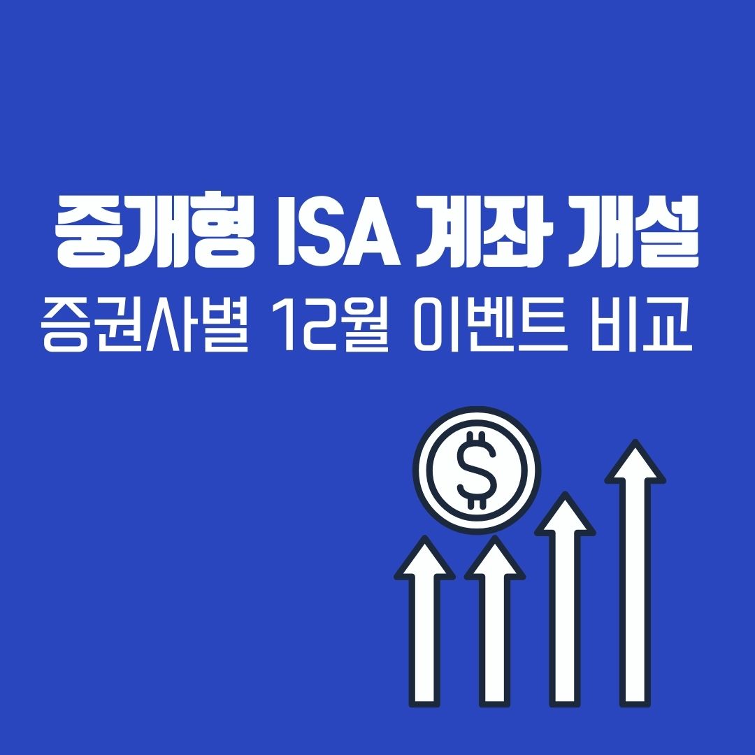 증권사마다 중개형 ISA 계좌 개설 이벤트로 수수료 우대 또는 사은품 증정 등 다양한 혜택을 제공하고 있습니다. 증권사별 12월 이벤트 비교 시작해 봅니다.