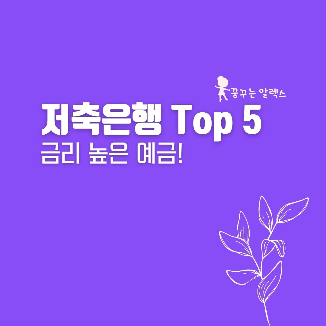 제1금융권 보다 금리가 높은 제2금융권, 그 중에서도 고금리 예금 상품이 있는 저축은행 Top 5를 알아보았습니다.