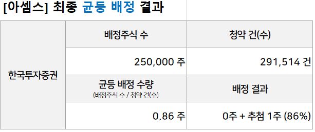 아셈스 청약 결과 : 균등 및 비례 배정수량