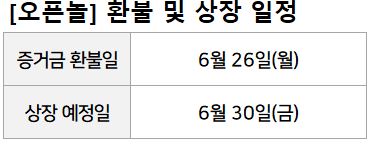 오픈놀 상장은 알멕과 동일한 6월 30일(금)입니다.