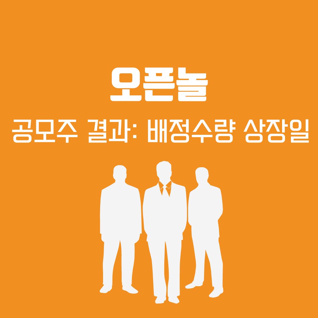 오픈놀 비례 경쟁률은 97.01대 1을 기록하며 비례 배정 1주를 받기 위해 필요한 증거금은 485,350원으로 약 49만원입니다. 비례 배정 1주를 받기 위한 증거금은 적지만 최소 청약 수량인 30주만 청약했다면 비례 배정 1주를 받지 못하고 균등으로만 배정받을 수 있었겠습니다.