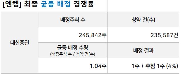 엔켐 공모주 청약 경쟁률 및 배정 수량