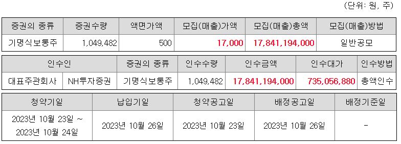 ○ 공모가 : 17,000원