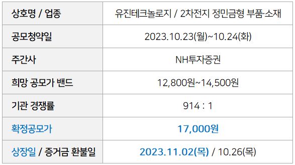 유진테크놀로지 : 청약일정 및 최소 증거금, 청약한도