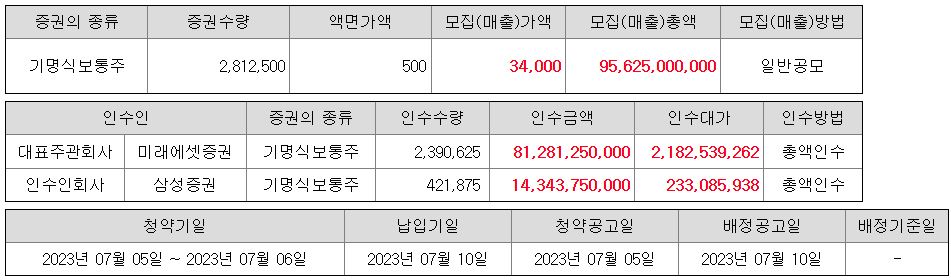 ○ 최소 청약 주수 및 증거금 : 균등 10주 / 170,000주
