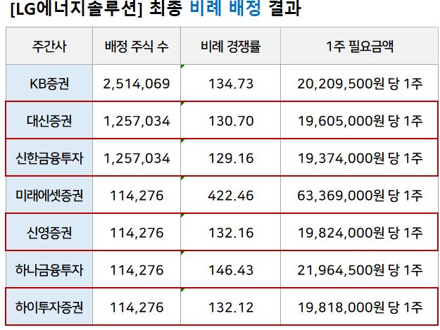 1. LG에너지솔루션 : 증권사별 균등배정 주식 수량