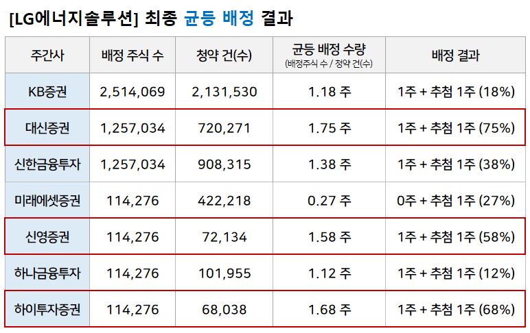 LG에너지솔루션 : 증권사별 균등배정 주식 수량