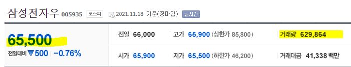 11월 18일 종가 기준으로 삼성전자와 삼성전자 우선주의 괴리율은 6.7%입니다. 보통주에 비해 우선주의 거래량이 적기는 하지만 적금 넣듯이 꾸준하게 삼성전자우를 꾸준히 매수하는 주주들이 늘고 있습니다.